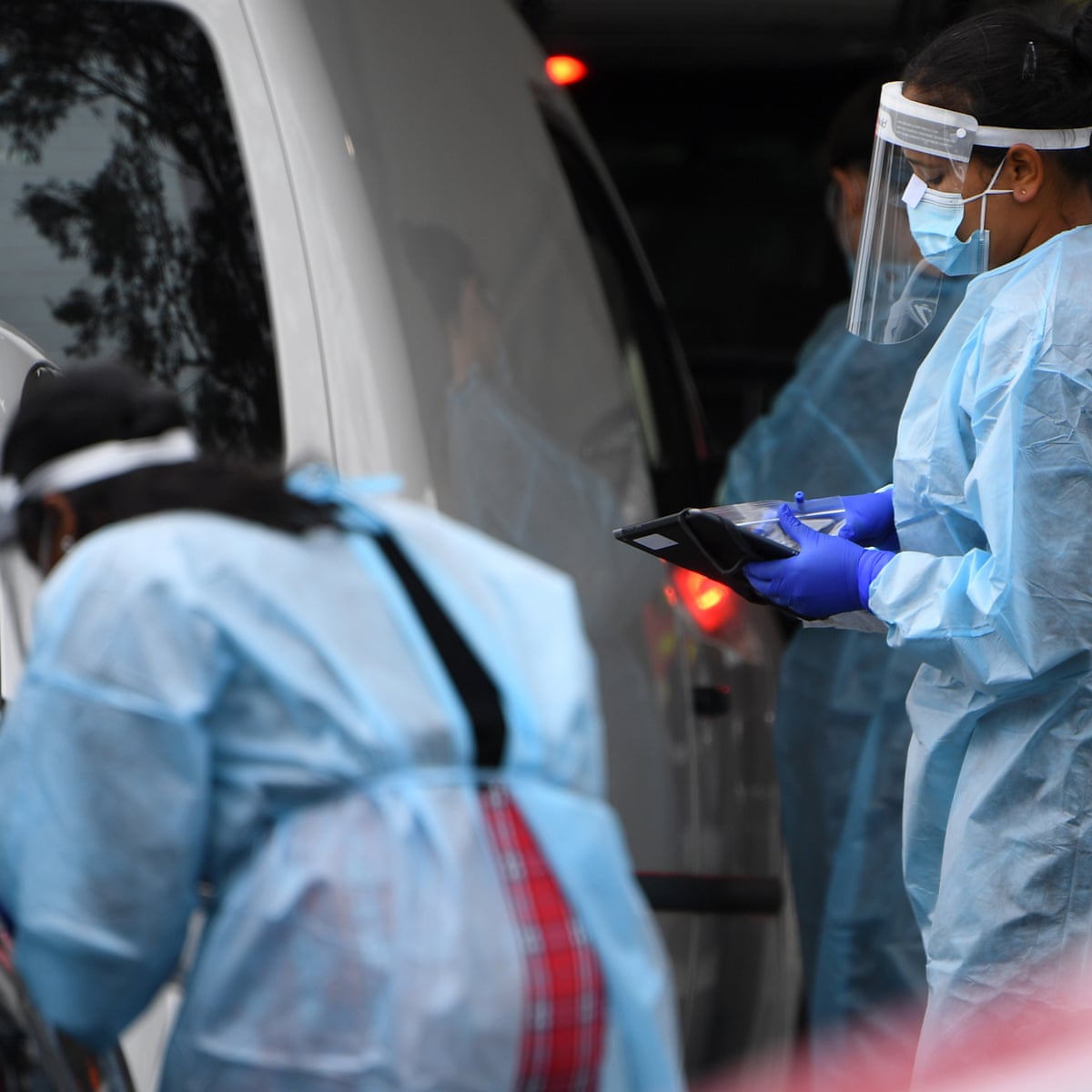 Health staff at a pop-up COVID19 test site. Trend in Covid cases by each NSW Sydney LGA with five or more recent coronavirus cases Victoria Covid outbreak and trend in Melbourne LGA cases.